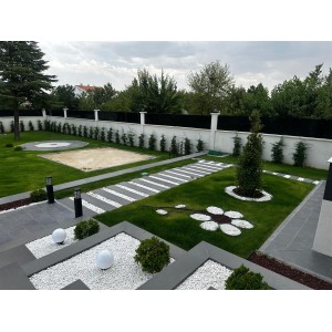 Uygulamasını üstlendiğimiz bu projede, özel tasarım villayı çevreleyen bahçede çalışmalarımız son hızla devam ediyor. Villanın lüks ve modern malzeme skalaları ile oluşturulmuş özel tasarımını saran bahçede, kullanıcılar için geniş kullanım alanları oluşturulurdu.